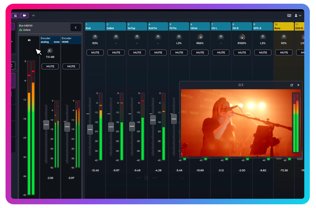 RemoteMix allows your team to control your digital mixer from anywhere in the world—as long as you have an internet-connected device. You’ll have full, channel-by-channel control of your live stream mix. But what really sets RemoteMix apart is that it pairs this control with real-time monitoring of your stream’s audio and video.